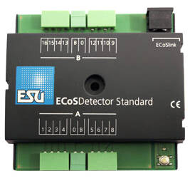 Module Standard ECoSDetector peut surveiller jusqu'à 16 sections de voie et signaler la présence d'une locomotive (occupation de la voie). Il est compatible avec tous les types de voies à 3 chiffres, qu'il s'agisse de voies M, K ou C.