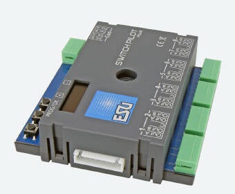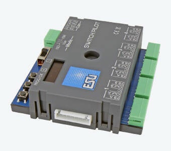 SwitchPilot 3, décodeur d'accessoires à solénoïde 4 voies, DCC/MM, OLED, avec retour d'information RC, mise à jour possible. Ils sont optimisés pour une utilisation stationnaire sur votre réseau et peuvent commander des aiguillages à double bobine classiques, des signaux lumineux, des découpleurs magnétiques, des ampoules, des led's ou d'autres charges stationnaires.